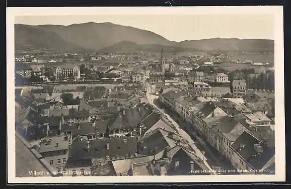AK Villach, Teilansicht mit Strassenpartie vom Stadtpfarrturm