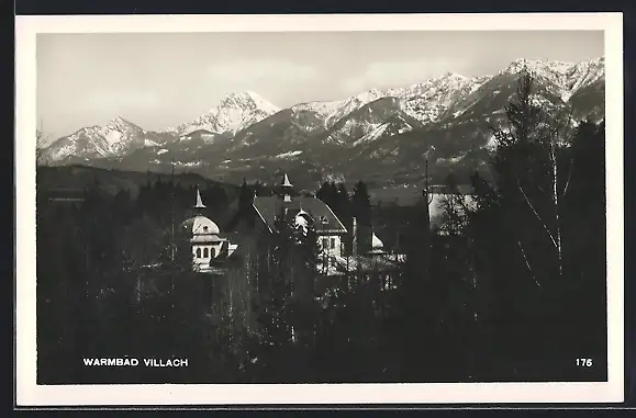 AK Villach, Warmbad Villach mit Bergpartie
