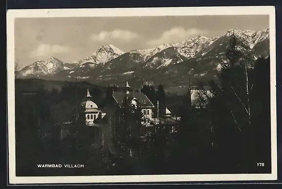 AK Villach, Warmbad Villach mit Bergpartie