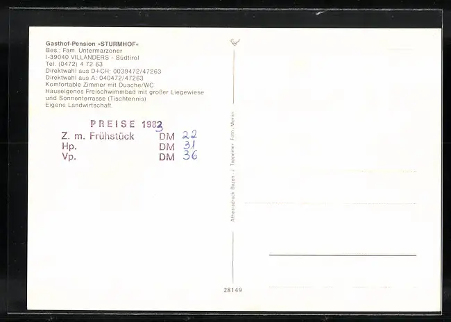 AK Villanders, Gasthof-Pension Sturmhof, Innenansichten