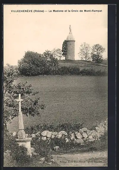 AK Villechenève, La Madone et la Croix de Mont-Rampat
