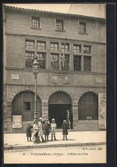 AK Villefranche, L`Hôtel-de-Ville avec enfants devant l`entrée