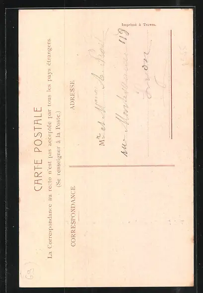 Personenbezogene Daten auf der Rückseite der Karte wurden durch blauen Textmarker unkenntlich gemacht. Die blauen Stellen sind auf die Vorderseite durchgeweicht und wirken sich negativ auf das Postkartenfoto aus
