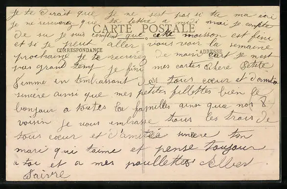 Personenbezogene Daten auf der Rückseite der Karte wurden durch blauen Textmarker unkenntlich gemacht. Die blauen Stellen sind auf die Vorderseite durchgeweicht und wirken sich negativ auf das Postkartenfoto aus
