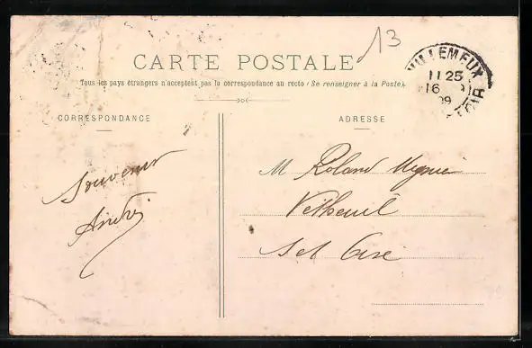 alte Ansichtskarte, gelaufen 1909, Eckknicke re., guter Zustand