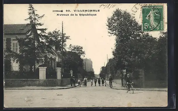 AK Villemomble, Avenue de la République avec passants et cycliste