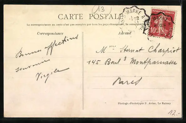 alte Ansichtskarte, gelaufen 1910, guter Zustand