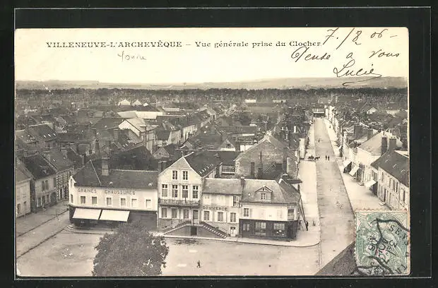 AK Villeneuve-L'Archevêque, Vue générale prise du Clocher