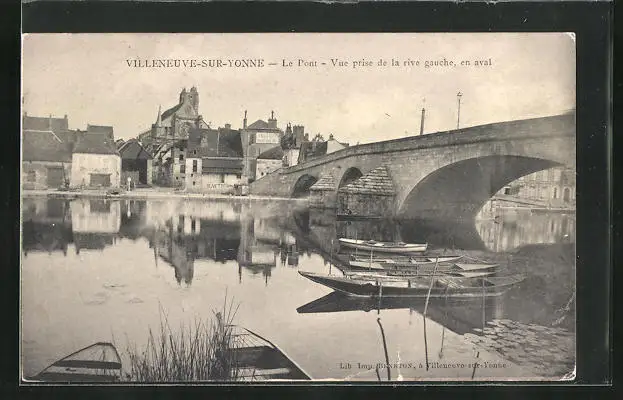AK Villeneuve-Sur-Yonne, Le Pont, Vue prise de la rive gauche, en aval