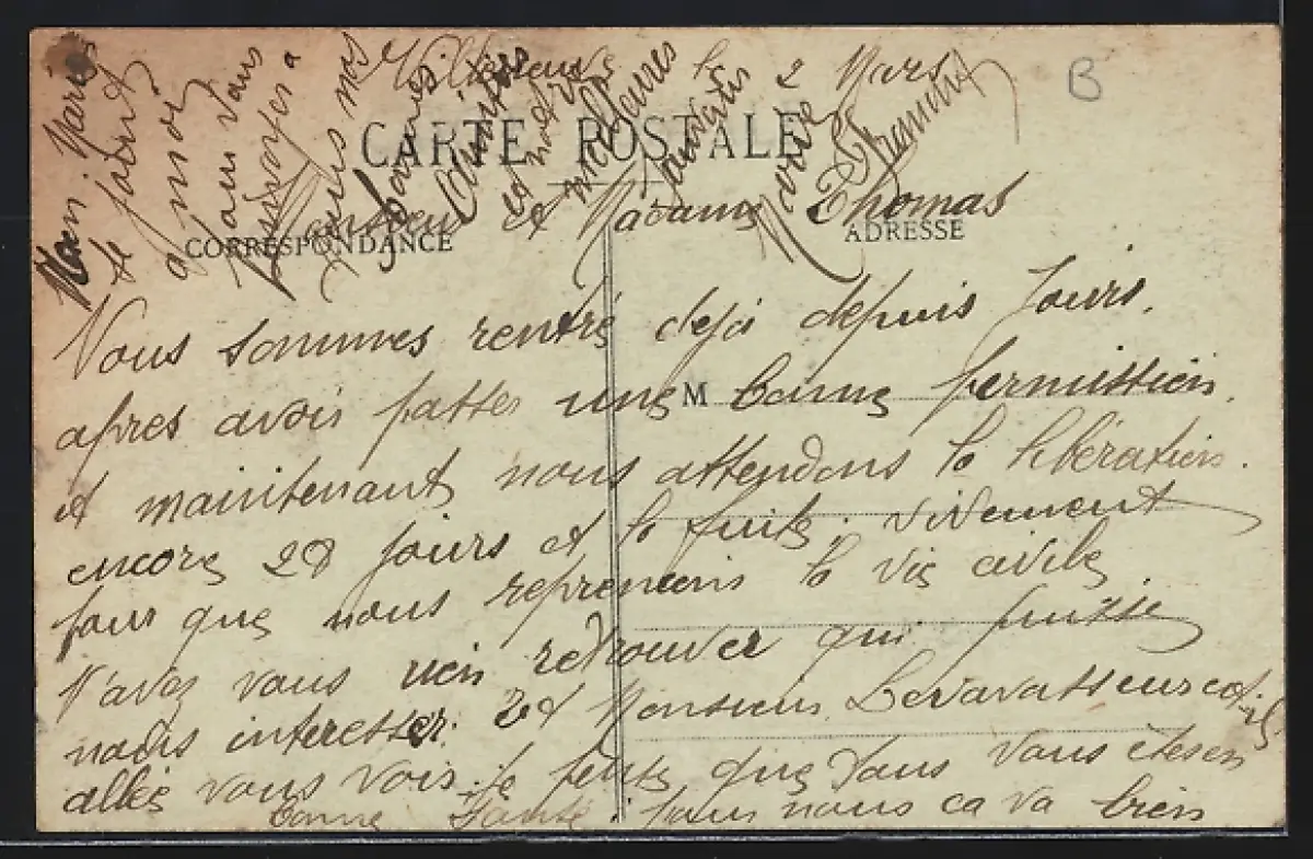 Personenbezogene Daten auf der Rückseite der Karte wurden durch blauen Textmarker unkenntlich gemacht. Die blauen Stellen sind auf die Vorderseite durchgeweicht und wirken sich negativ auf das Postkartenfoto aus