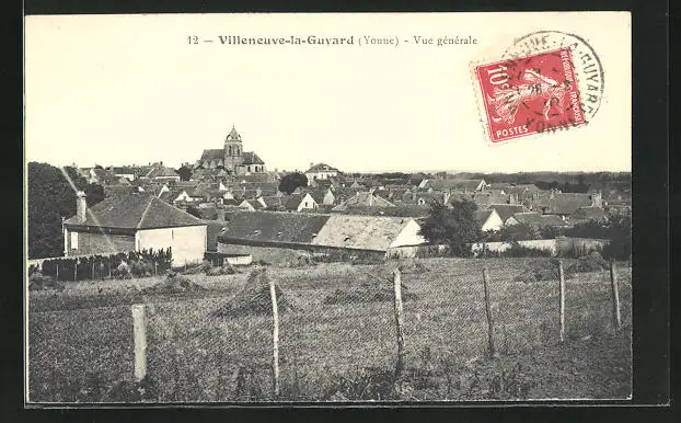 AK Villeneuve-la-Guyard, Vue générale, Teilansicht mit Kirche