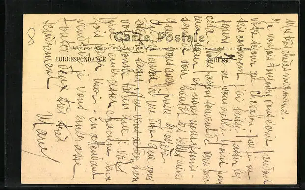 Personenbezogene Daten auf der Rückseite der Karte wurden durch blauen Textmarker unkenntlich gemacht. Die blauen Stellen sind auf die Vorderseite durchgeweicht und wirken sich negativ auf das Postkartenfoto aus