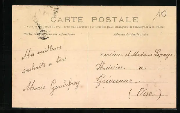 gelaufen 1910, Briefmarke entfernt, guter Zustand