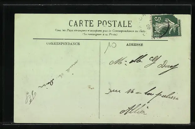 gelaufen 1909, Briefmarke entfernt, minimaler Einriss li. mittig, guter Zustand