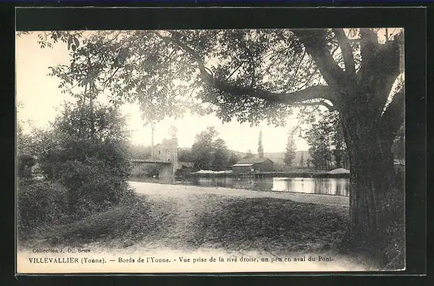 AK Villevallier, Bords de l`Yonne, Vue prise de la rive droite, un peu en aval du Pont