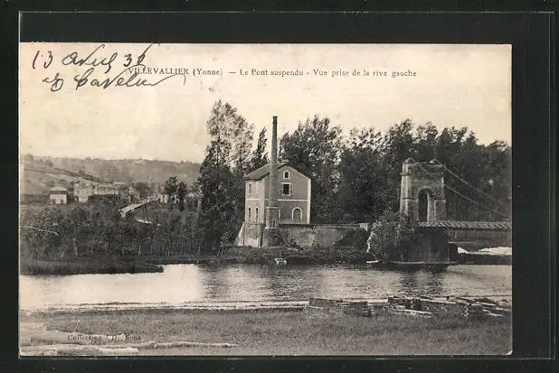 AK Villevallier, Le Pont suspendu, Vue prise de la rive gauche