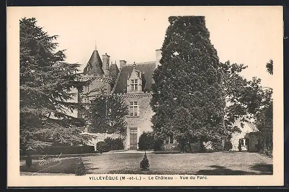 AK Villevêque, Le Château, Vue du Parc