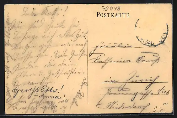 alte Ansichtskarte, gelaufen, Briefmarke entfernt, rückseitig Oberflächenschaden, guter Zustand