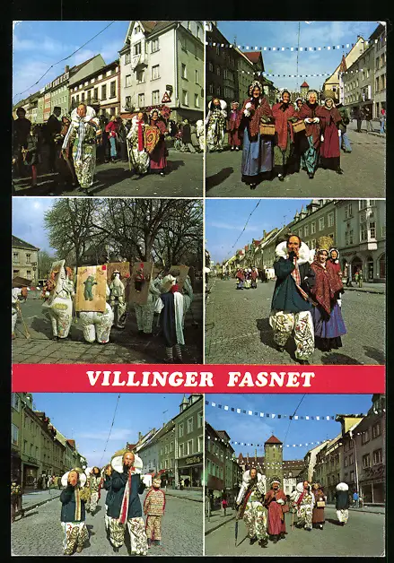 AK Villingen, Fasnet, Umzug mit Kostümierten