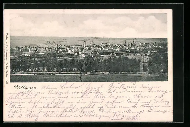 AK Villingen, Gesamtansicht aus der Vogelschau