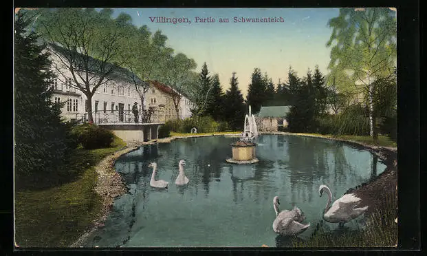 AK Villingen, Partie am Schwanenteich