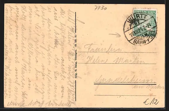 gelaufen 1925, Eckknick li. unten, Bugspur re. oben, guter Zustand