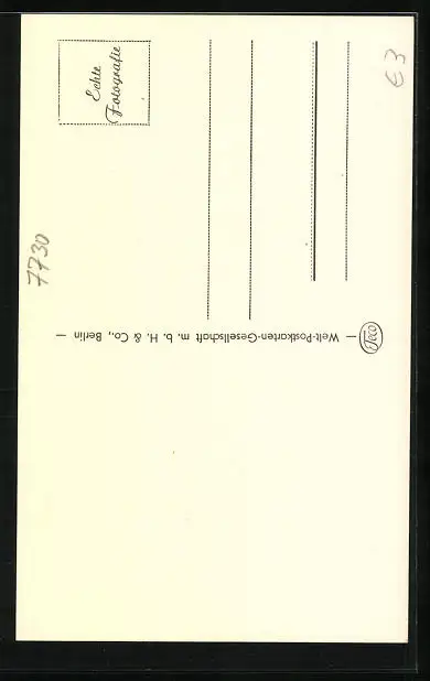 Personenbezogene Daten auf der Rückseite der Karte wurden durch blauen Textmarker unkenntlich gemacht. Die blauen Stellen sind auf die Vorderseite durchgeweicht und wirken sich negativ auf das Postkartenfoto aus