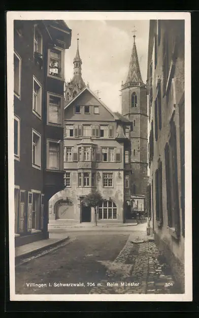 AK Villingen i. Schwarzwald, Strassenpartie beim Münster