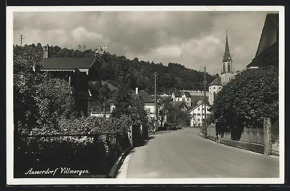 AK Villmergen, Ausserdorf, Strassenpartie mit Kirche