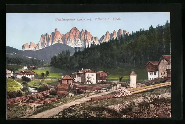 AK Villnöss, Ortsansicht mit Geislerspitzen