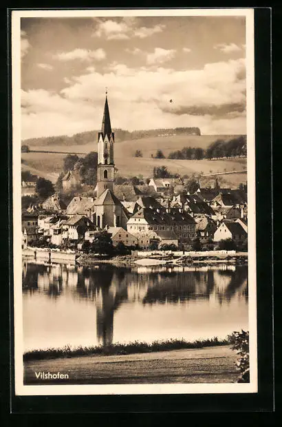 AK Vilshofen, Blick über Donau zum Ort mit Kirchturm