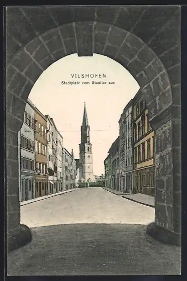 AK Vilshofen, Stadtplatz vom Stadttor aus
