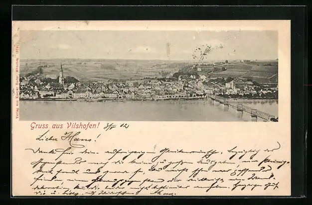 AK Vilshofen, Teilansicht mit Kirche und Brücke