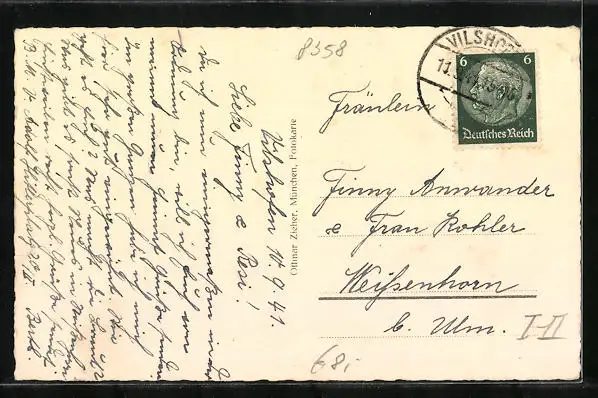 alte Ansichtskarte, gelaufen 1941, Eckknick unten links, Einriss rechts, guter Zustand
