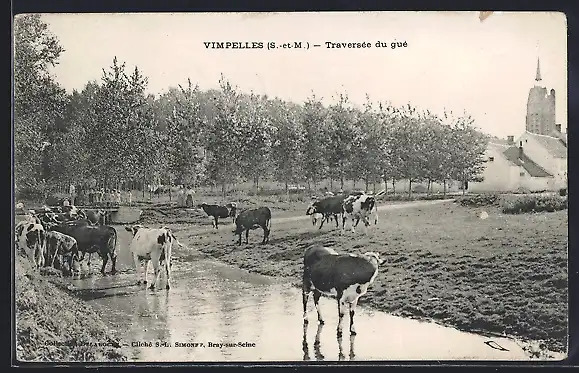 AK Vimpelles, Traversée du gué avec troupeau de vaches