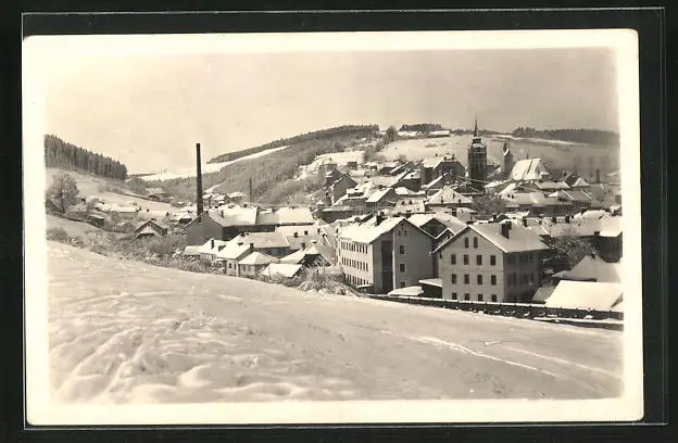 AK Vimperk / Sumava, Ortsansicht im Winter