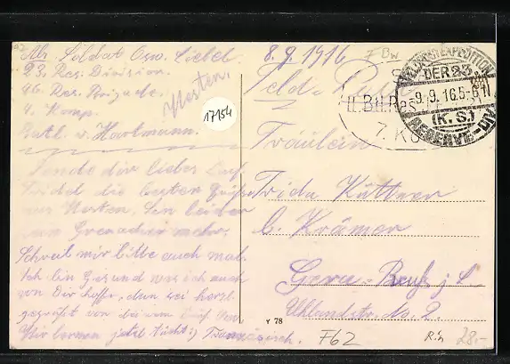 alte Ansichtskarte, gelaufen 1916, guter Zustand