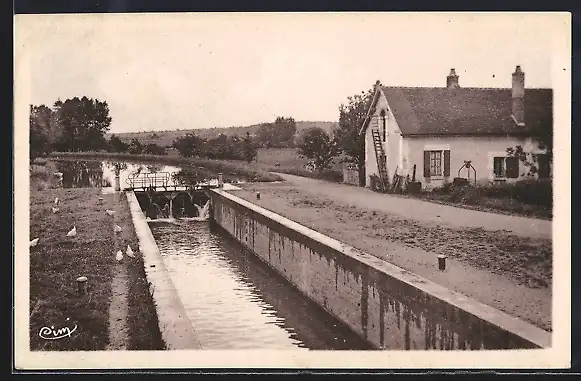 AK Vincelles /Yonne, Le Canal et l`Écluse