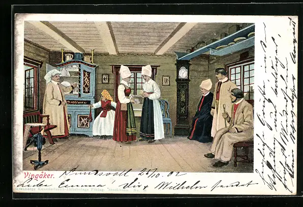 AK Vingaker, Familie in Tracht mit Soldaten in ihrem Haus