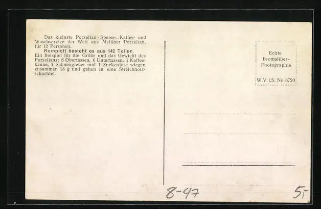 Personenbezogene Daten auf der Rückseite der Karte wurden durch blauen Textmarker unkenntlich gemacht. Die blauen Stellen sind auf die Vorderseite durchgeweicht und wirken sich negativ auf das Postkartenfoto aus