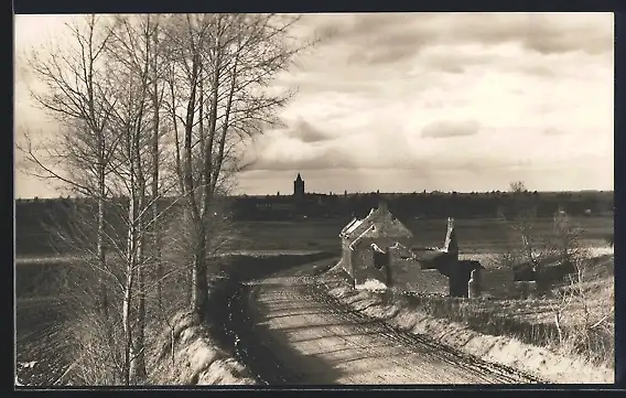 AK Vitry, Totalansicht mit Ruine am Wegesrand