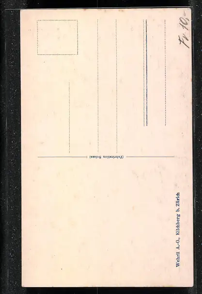 Personenbezogene Daten auf der Rückseite der Karte wurden durch blauen Textmarker unkenntlich gemacht. Die blauen Stellen sind auf die Vorderseite durchgeweicht und wirken sich negativ auf das Postkartenfoto aus