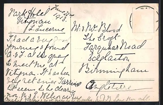 alte Ansichtskarte, gelaufen, Briefmarke entfernt, guter Zustand