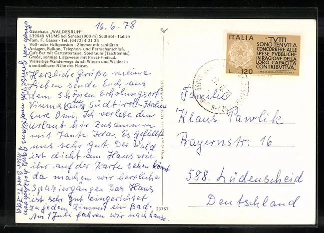 alte Ansichtskarte, gelaufen 1978, guter Zustand