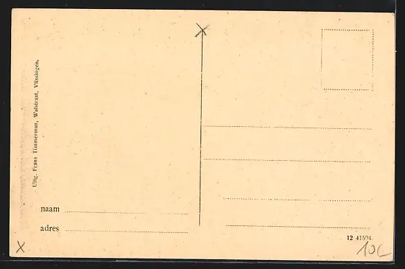 Personenbezogene Daten auf der Rückseite der Karte wurden durch blauen Textmarker unkenntlich gemacht. Die blauen Stellen sind auf die Vorderseite durchgeweicht und wirken sich negativ auf das Postkartenfoto aus