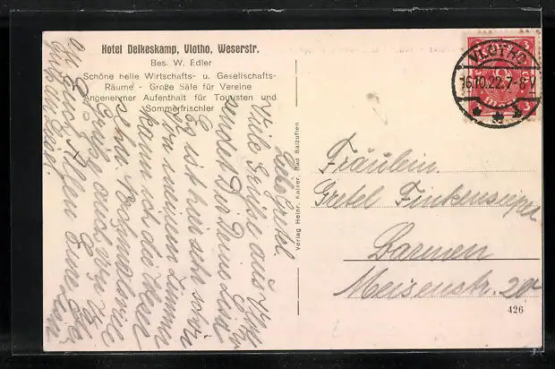 AK Vlotho / Weser, Hotel Delkeskamp in der Weserstrasse