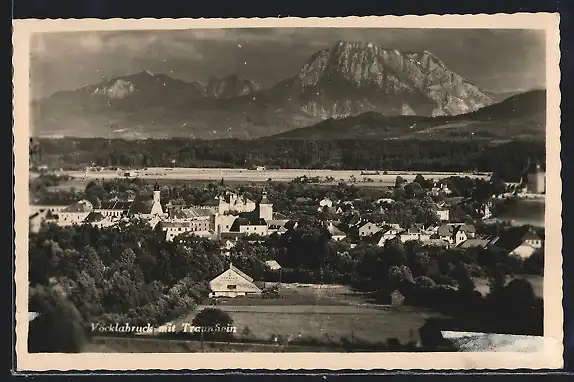 AK Vöcklabruck, Totalansicht mit Kirche und Traunstein