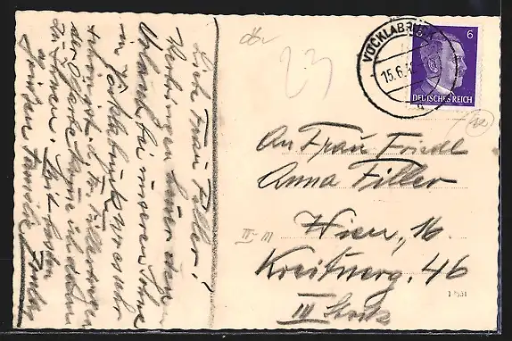 gelaufen 1942, Klebe- und Papierreste unten li. u. re., guter Zustand