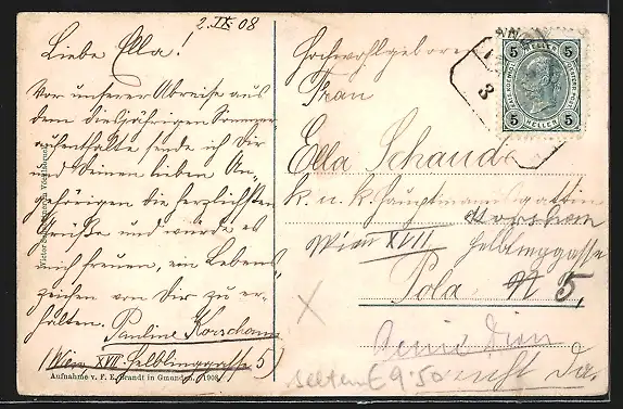 alte Ansichtskarte, gelaufen 1908, Stempelspur, guter Zustand