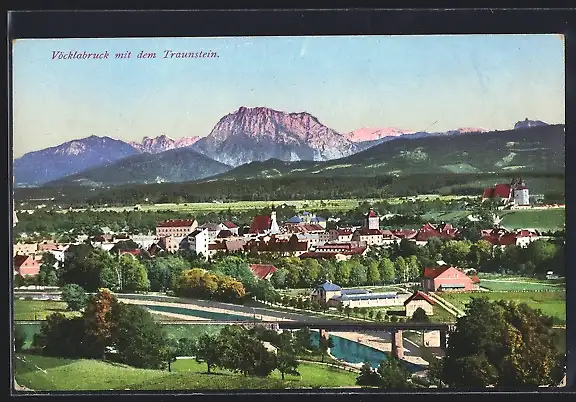 AK Vöcklabruck, Totalansicht mit Traunstein